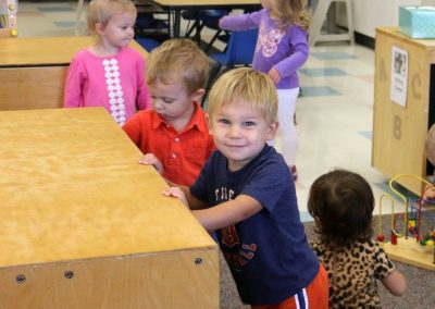 Our main focus in the two-year-old classroom is to provide positive, developmentally age-appropriate experiences to help your child grow. These experiences are provided to meet your child’s needs and to stimulate their learning in all developmental areas, including: physical, social, emotional, and intellectual. Our Twos class is full of fun, learning, songs, art, new friends, and so much more! Your child will bloom and grow throughout the year.